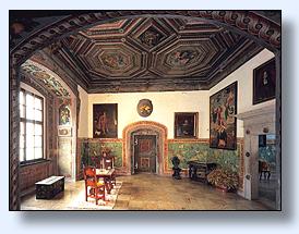 - Místnost s krbem - Patřila původně ke Královskému sálu. Vlašským komínem dal místnost opatřit roku 1559 Jáchym z Hradce.